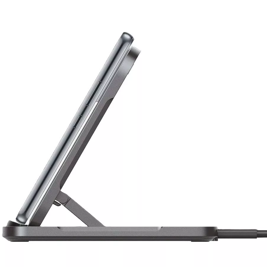 Ez a Spigen ArcField Stand Flex egy exkluzív és funkcionális induktív töltő, amelyet kifejezetten a Samsung készülékek felhasználói számára terveztek. A tanúsított eszköz a Samsung Super Fast Wireless Charging technológiájával gazdagodott, amely lehetővé teszi az adott gyártó készülékeinek gyors töltését.