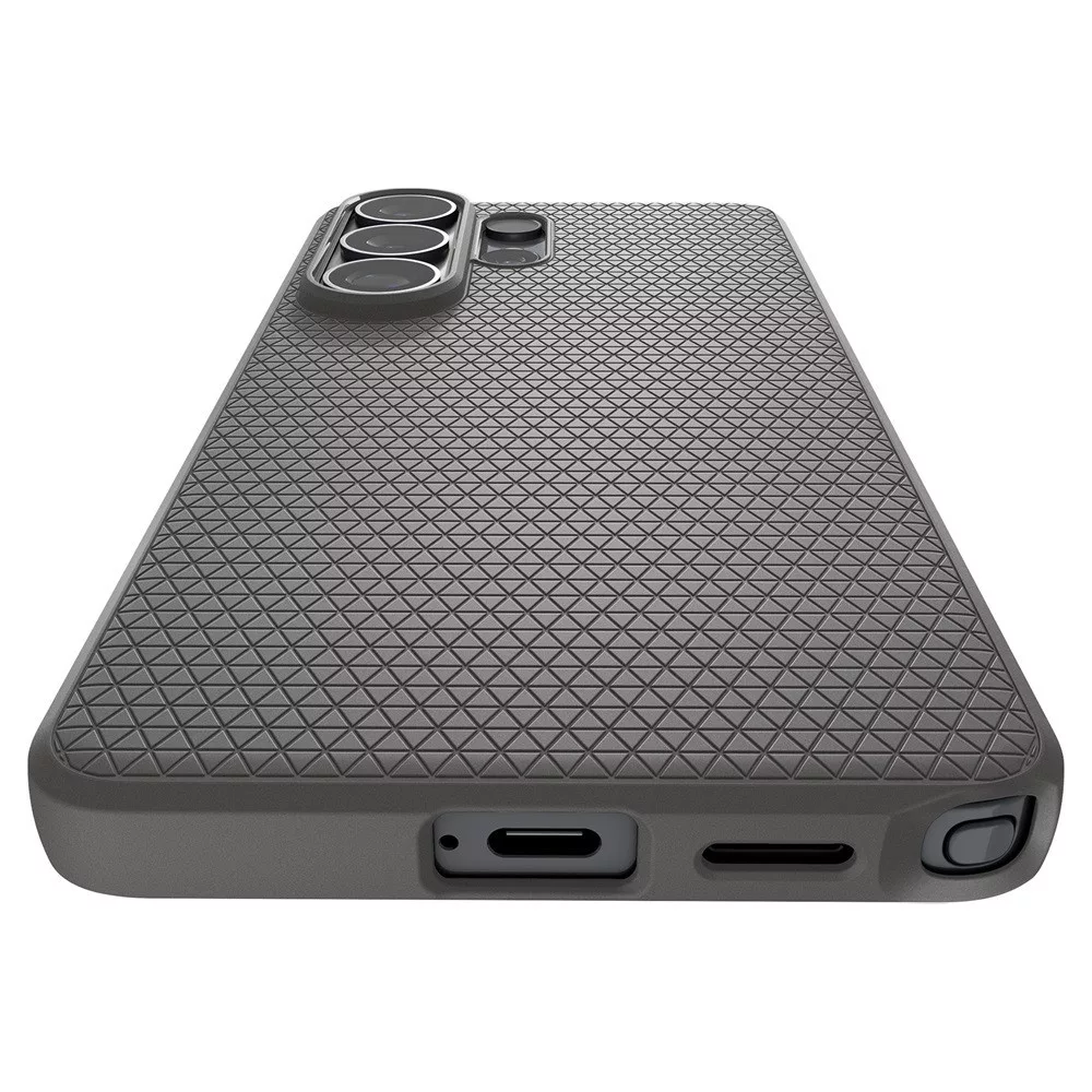 A Spigen Liquid Air tok könnyű, de rendkívül tartós védelmet kínál mobiltelefonjához. Egyedi, légies dizájnja elegáns, matt felületet biztosít, amely nemcsak jó megjelenést kölcsönöz, de megakadályozza az ujjlenyomatok megjelenését és a csúszást is. A tok puha, rugalmas TPU anyagból készült, amely kiválóan elnyeli az ütődéseket, és ellenáll a karcolásoknak. A mintázott belső felület tovább növeli az ütéselnyelő képességet, míg a pontos kivágások biztosítják, hogy minden funkció könnyen elérhető maradjon. A Spigen Liquid Air tökéletes választás azok számára, akik egy vékony, könnyű és funkcionális tokot keresnek, amely nem vonja el a figyelmet a telefon eredeti megjelenéséről.