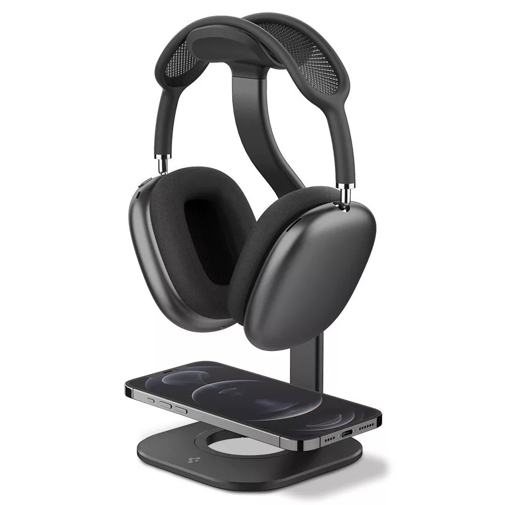 Helyezze AirPods Max és iPhone Magsafe kompatibilis készülékét a dokkolóra. A fejhallgatótartó tökéletes és jól látható helyet biztosít AirPods Max-a számára, miközben a telefontját a beépített MagSafe töltőnyíláson keresztül töltheti. Fontos tudnivaló, hogy a csomag nem tartalmazza a MagSafe töltőt.