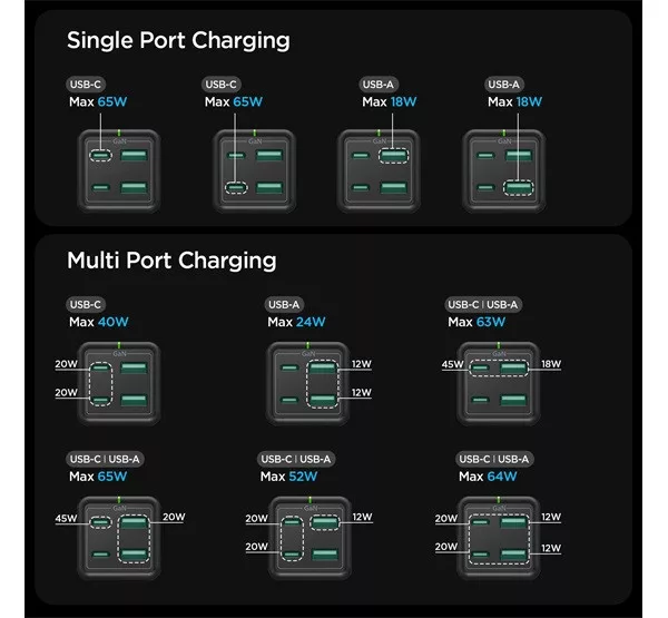 A Spigen ArcDock 65W-os töltő kompakt mérete ellenére rendkívüli teljesítményt nyújt, köszönhetően a fejlett 3D PCB technológiának. 19%-kal kisebb, mint a szokásos 65W-os töltők, mégis elegendő energiát biztosít például egy 13 hüvelykes MacBook Pro 50%-os feltöltéséhez mindössze 43 perc alatt. Kis méretű, de nagy teljesítményű megoldás a gyors és hatékony töltéshez.