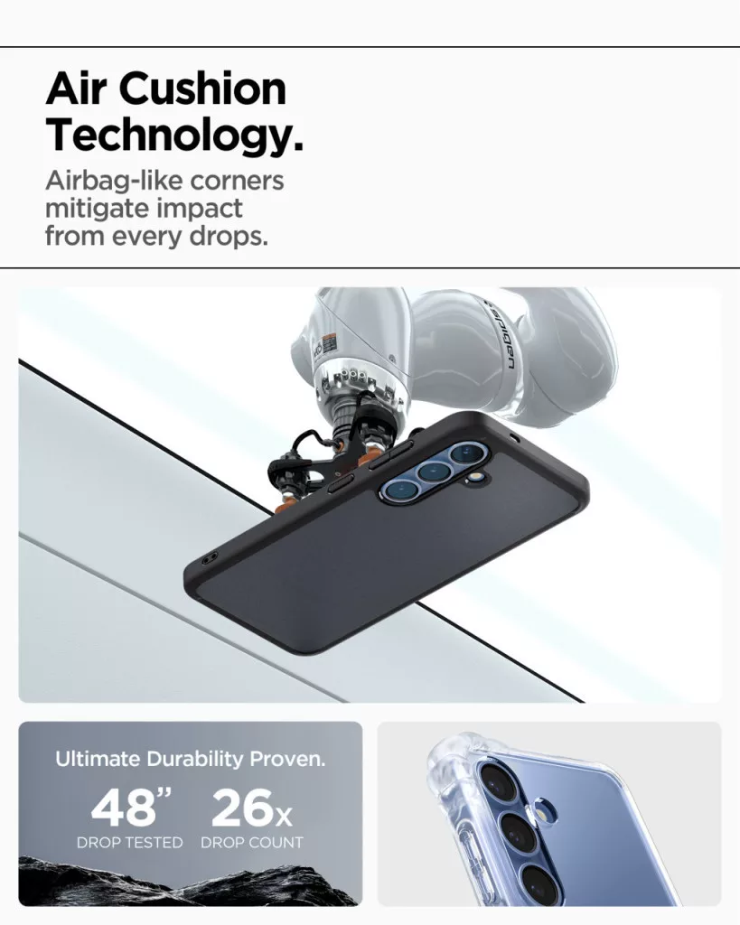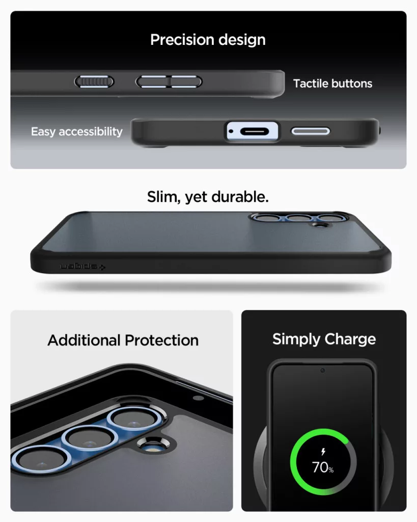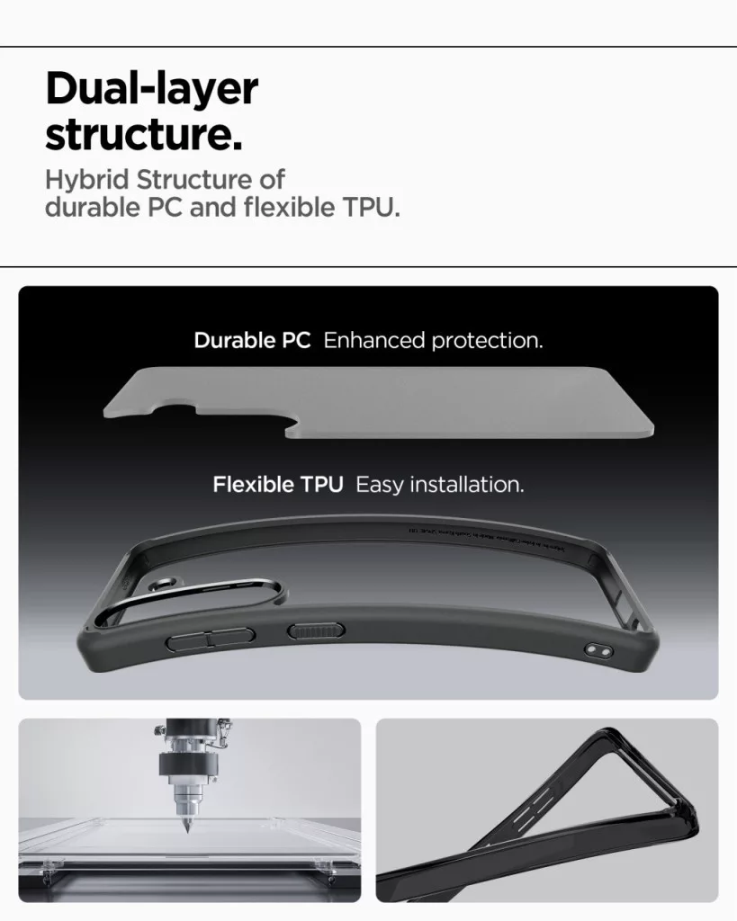 A Spigen Ultra Hybrid tok tökéletes egyensúlyt képez a védelem és a stílus között, biztosítva a készülék eredeti megjelenésének kiemelését átlátszó hátlapjával, miközben erős, ütésálló kerete kiváló védelmet nyújt. Az edzett polikarbonátból készült hátlap ellenáll a karcolásoknak, míg a TPU keret elnyeli az ütődéseket és segít megőrizni a telefon sérülésmentes állapotát. A kialakítás figyelembe veszi a kamera és a portok védelmét, emelkedett keretekkel biztosítva ezeknek extra védelmet a felületi sérülésekkel szemben. Ez a tok ideális választás azoknak, akik nem akarnak kompromisszumot kötni a funkcionalitás, védelem és elegáns megjelenés között.